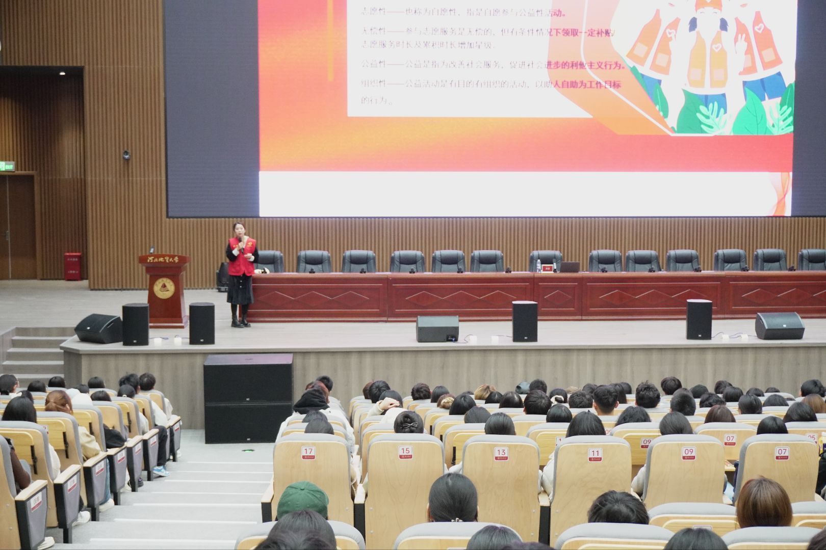 为深入贯彻落实志愿服务精神,提升青年志愿者的专业素养与服务能力,11月2日下午,由校团委、校青年志愿者协会主办的“志愿青春,专业同行”志愿服务培训讲座在新校区春秋讲堂顺利举行。本次讲座特邀冀徽志愿服务总队队长、石家庄东华铁路学校团委书记刘璐老师担任主讲,校青年志愿者协会指导教师秦晋和骨干志愿者代表共计380人参加培训。