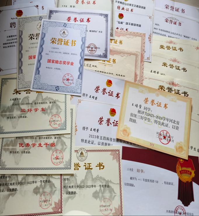 在获得省级三好学生之后,王靖萱同学继续她坚持的道路。她坚定的告诉我们:“道阻且长,行则将至”。她将考公考研都列在未来的计划中,纵使前路漫漫,但只要努力去做一定会达到目标。行而不辍,未来可期。